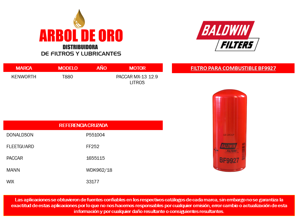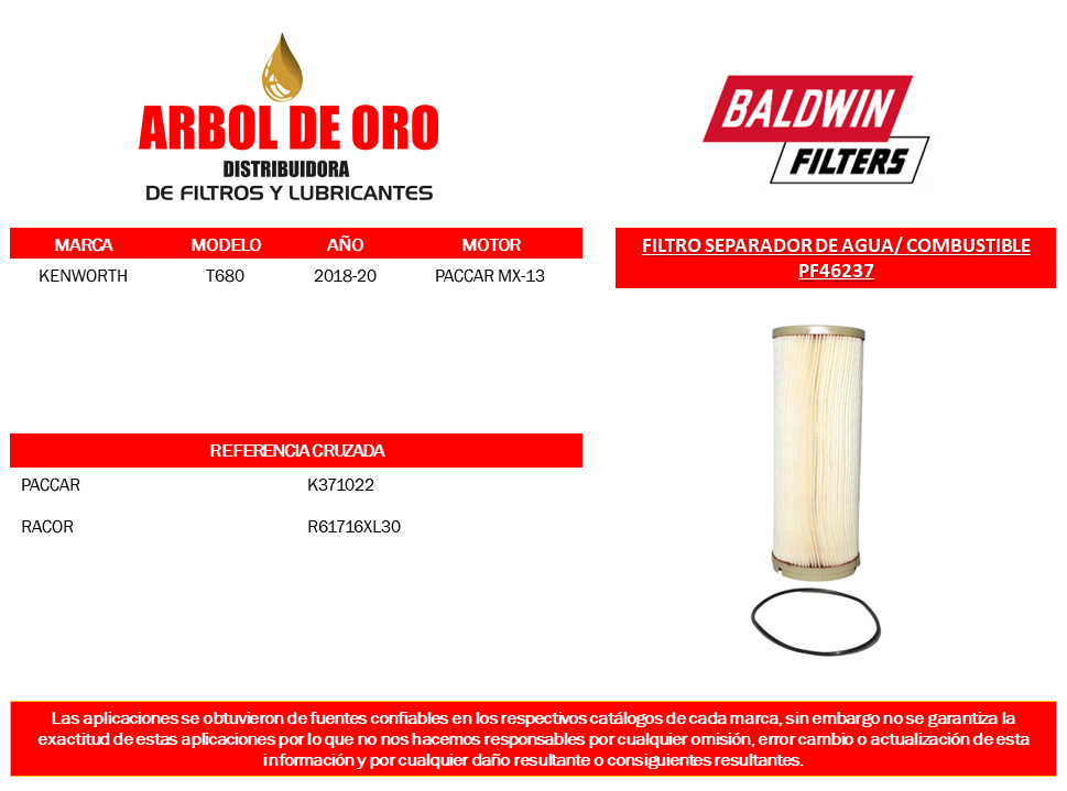 Filtro para combustible de Kenworth T880 PACCAR MX-13 12.9 litros.