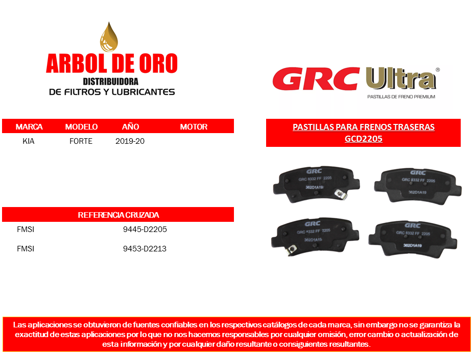 Pastillas para frenos traseras Kia Forte 2019-20.