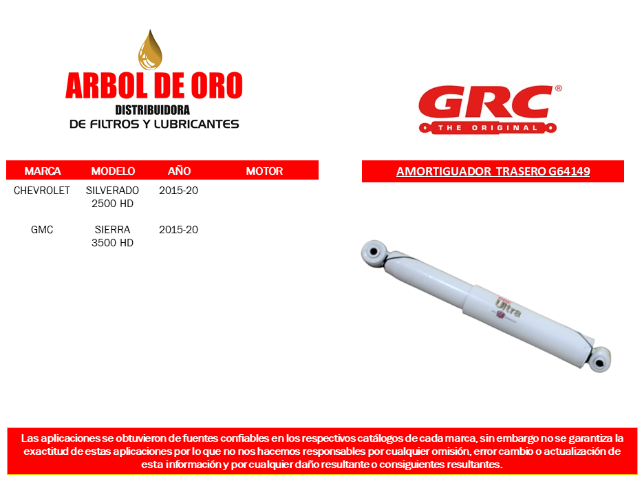 Amortiguador trasero Chevrolet Silverado 2500 HD 2015-20, GMC Sierra 3500 HD 2015-20