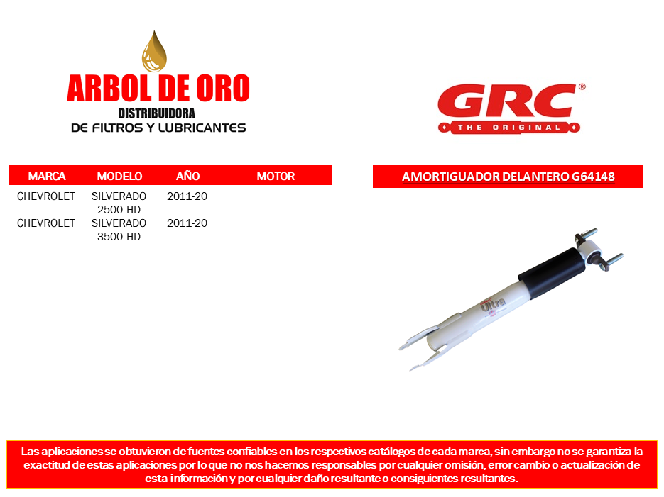 Amortiguador delantero Chevrolet Silverado 2500 HD 2011-20, Chevrolet Silverado 3500 HD 2011-20