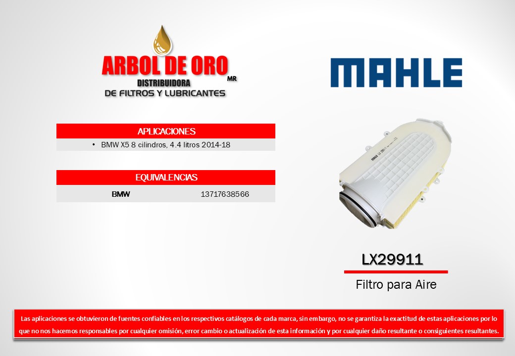 Filtro para aire de BMW X5 8 cilindros, 4.4 litros 2014-18. Número de parte BMW: 13717638566