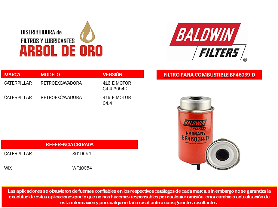 Número de parte Caterpillar: 3619554 Número de parte Wix: WF10054