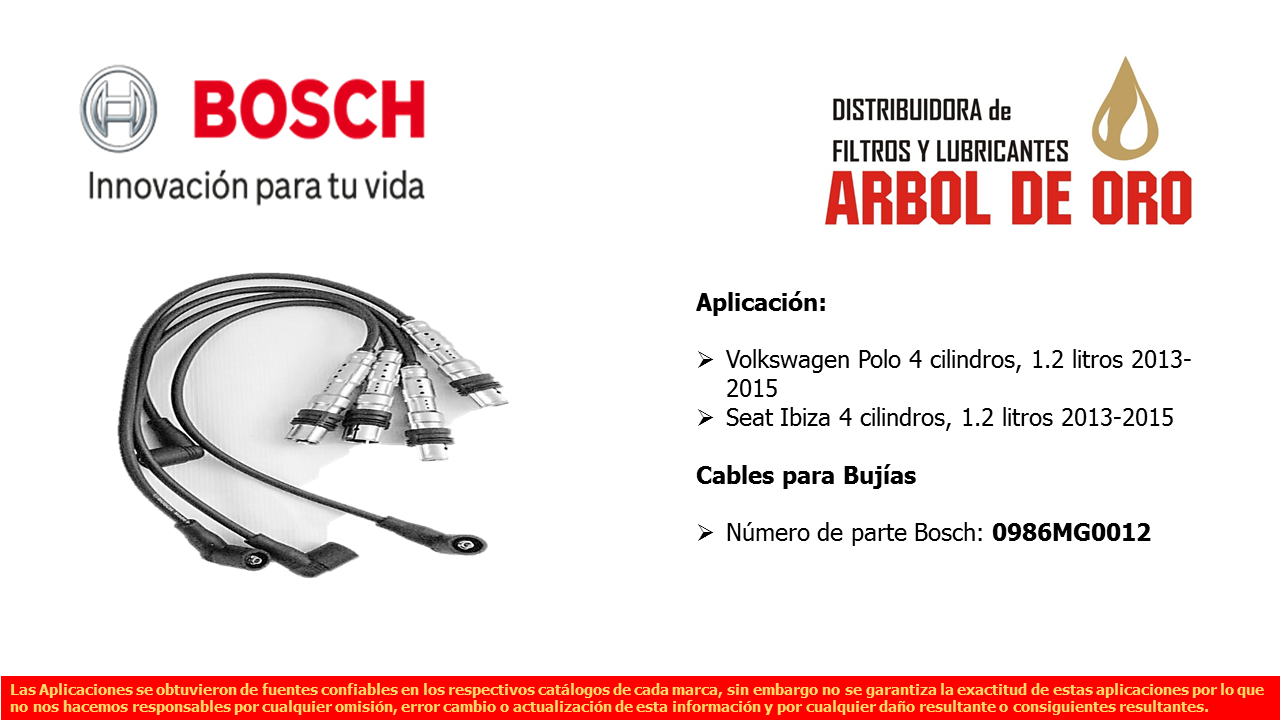 Cables para bujías Volkswagen Polo 4 cilindros, 1.2 litros 2013-2015