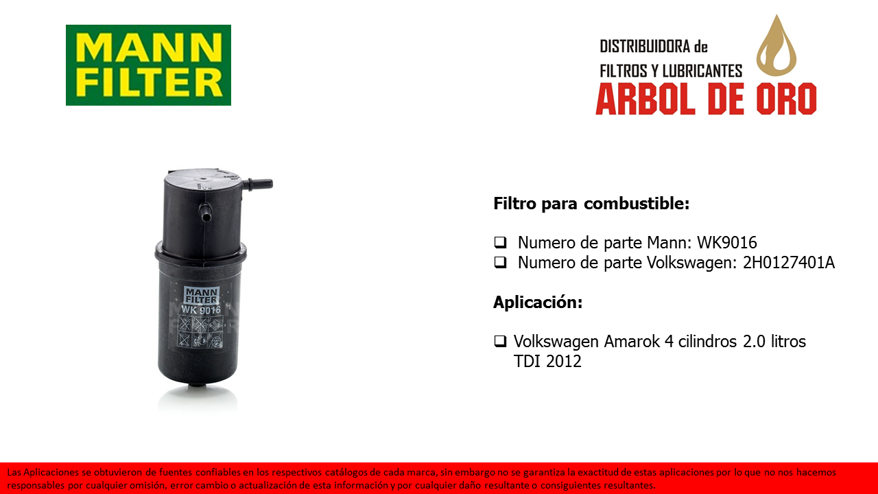 Publicado en: Septiembre 2016Filtro para combustible Volkswagen Amarok 4 cilindros 2.0 litros TDI 2012-14