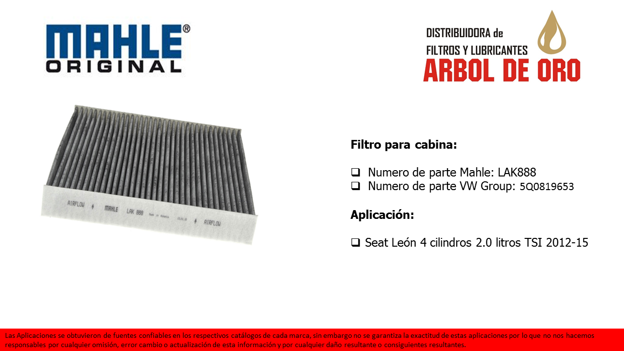 Filtro para cabina Seat Leon 4 cilindros 2.0 litros TSI 2012-15