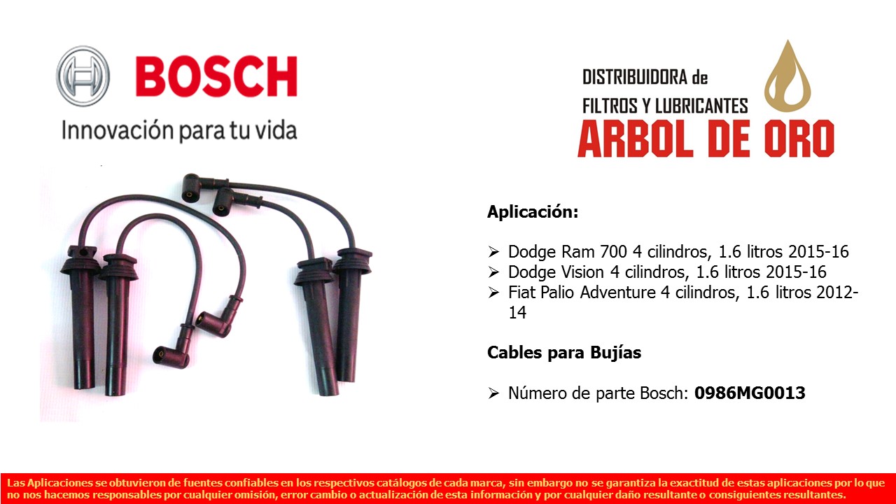 Cables para bujías Dodge Ram 700 4 cilindros, 1.6 litros 2015-16