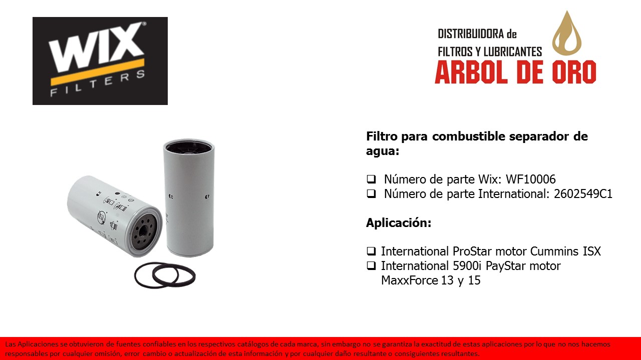 Filtro para combustible separador de agua International ProStar motor Cummins ISX