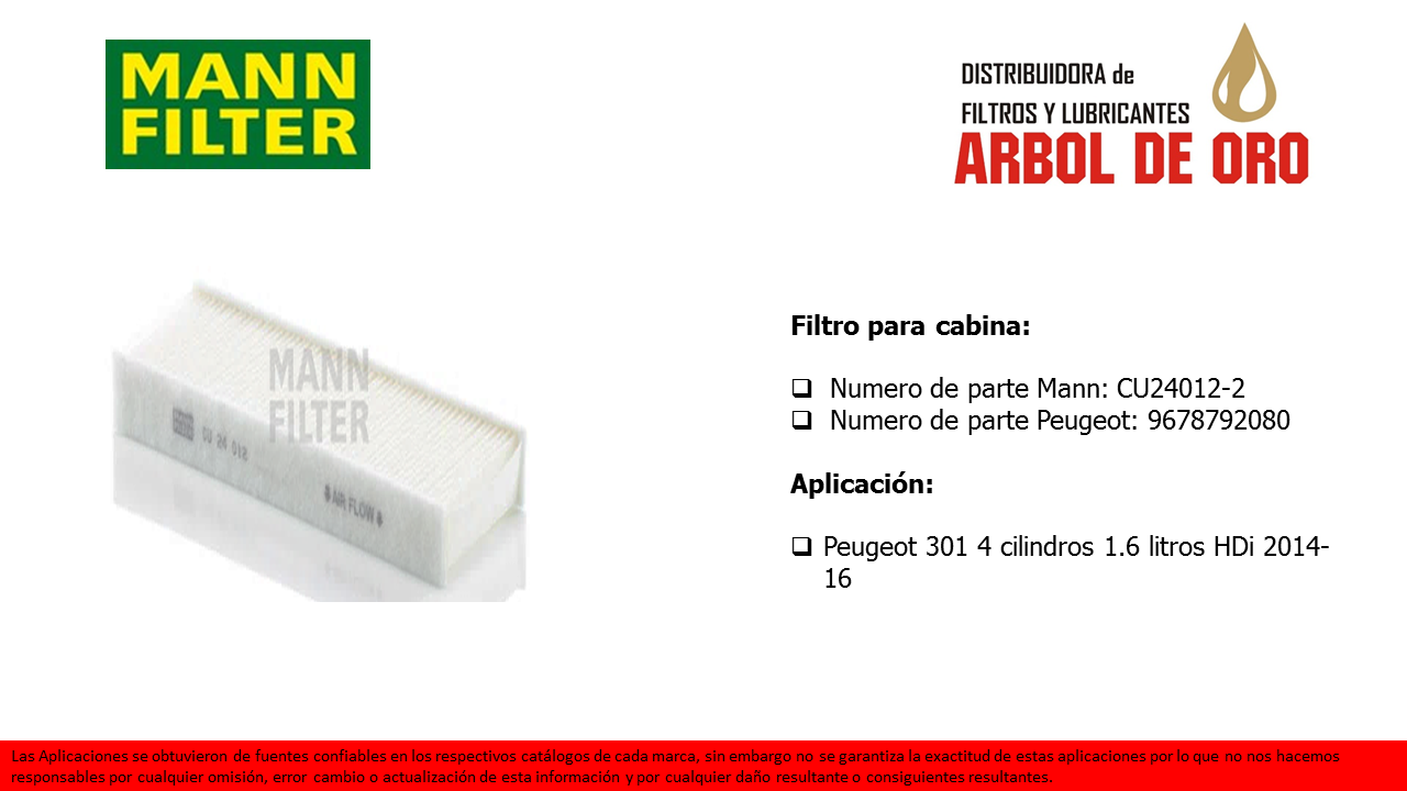 Publicado en: Noviembre 2016Filtro para cabina Peugeot 301 4 cilindros 1.6 litros HDi 2014-16