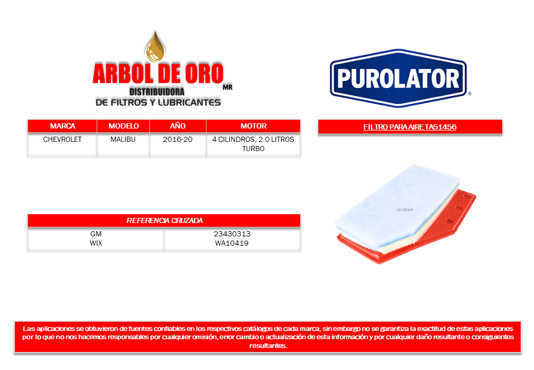 Número de parte Purolator: TA51456