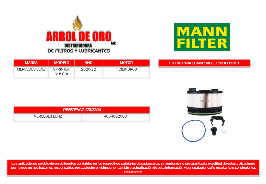 Número de parte Mann Filter: PU11001ZKIT