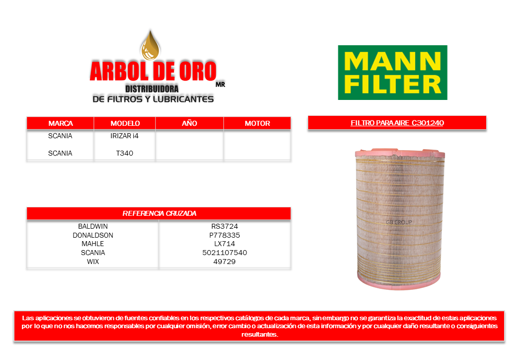 Número de parte Mann Filter: C301240