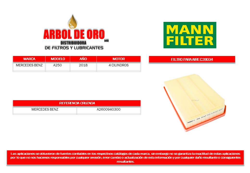Número de parte Mann Filter: C28034