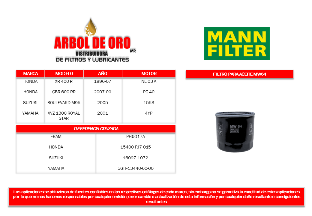 Número de parte Mann Filter: MW64