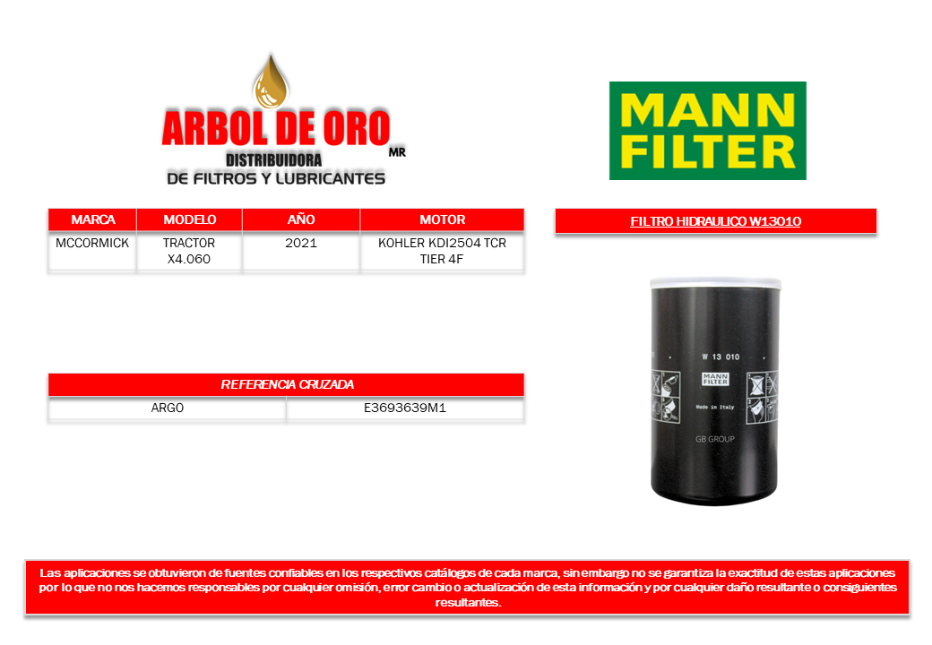 Número de parte Mann Filter: W13010