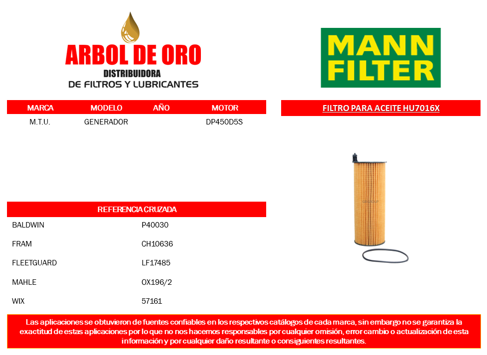 Publicado en: Agosto 2022Filtro para aceite de M.T.U generador con motor DP450D5S.